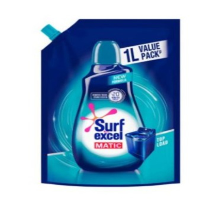 Surf Excel Matic Front Load Liquid Detergent 1L – advanced low-foam formula for front load machines. Removes tough stains, protects fabric & keeps clothes fresh.